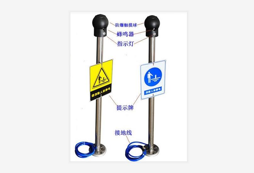 靜電裝置是指用金屬管做成 的扶手,在進入這些場所之前人體應撫摸此扶手以消除人體靜電。