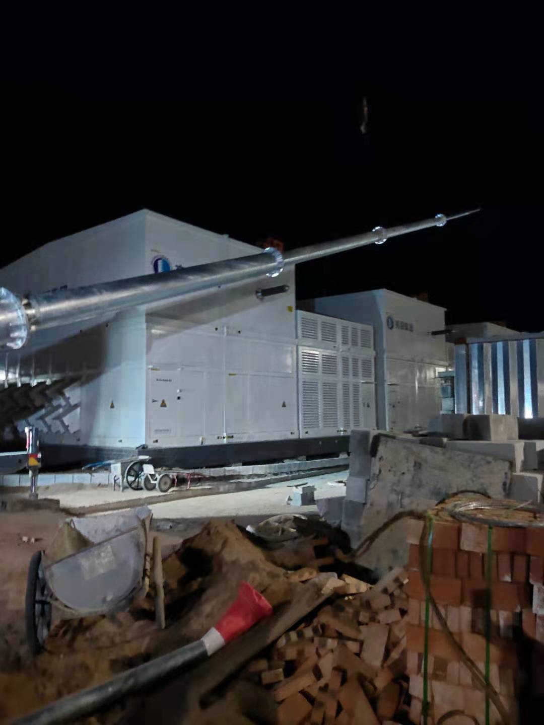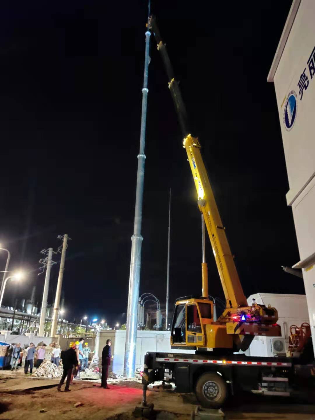連夜組裝隆基110KV變電站30米獨(dú)立避雷針?biāo)?/span>